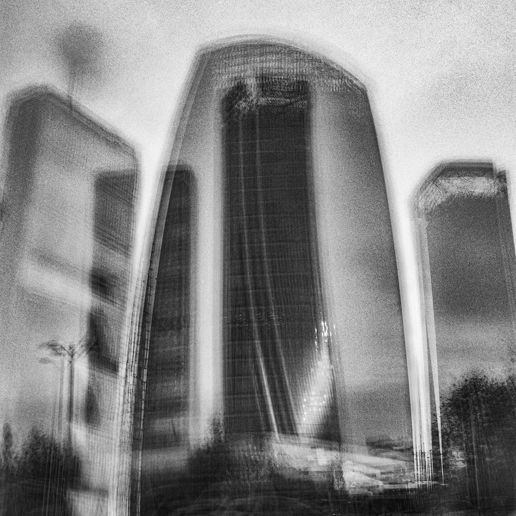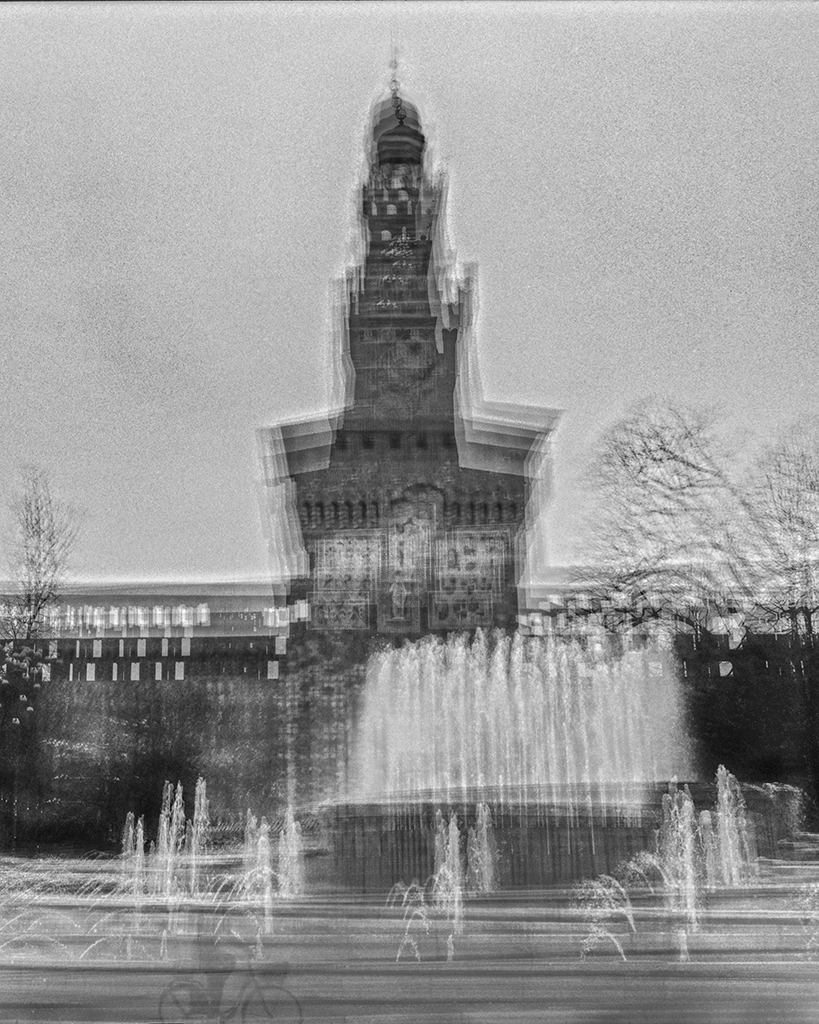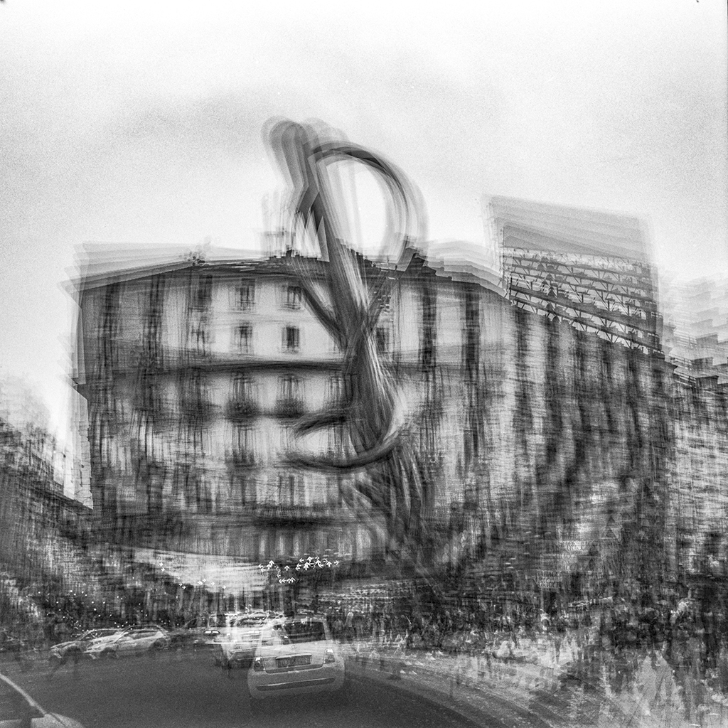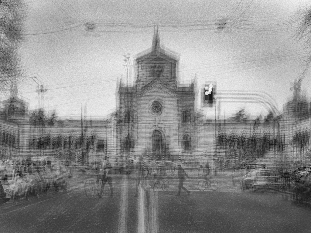 Le immagini del progetto “Eccentrica” del fotografo Enrico Magri sono prodotte con una tecnica di multi-esposizione su pellicola bianco e nero. Eseguiti a mano e senza cavalletto, gli innumerevoli scatti producono stratificazioni che si traducono in opere che sembrano vivere una vita propria. Da quindici a trentacinque scatti in sequenza, realizzati in momenti scelti e attesi, rivelano la consapevolezza dello sguardo d’autore.