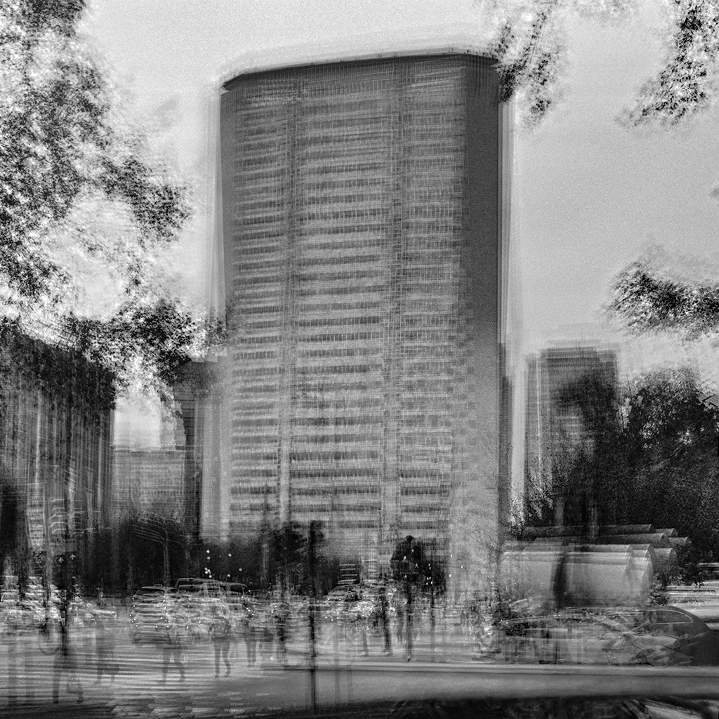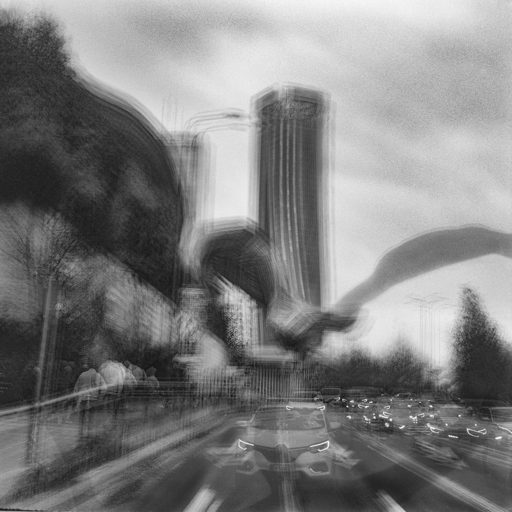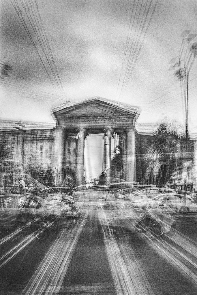 Le immagini del progetto “Eccentrica” del fotografo Enrico Magri sono prodotte con una tecnica di multi-esposizione su pellicola bianco e nero. Eseguiti a mano e senza cavalletto, gli innumerevoli scatti producono stratificazioni che si traducono in opere che sembrano vivere una vita propria. Da quindici a trentacinque scatti in sequenza, realizzati in momenti scelti e attesi, rivelano la consapevolezza dello sguardo d’autore.